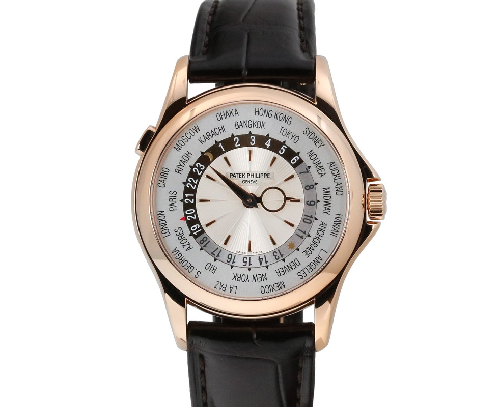 This is the highly sought after Patek Philippe World Time Ref. 5130R in Rose Gold. This watch features a caliber 240 HU automatic movement with a 48 power reserve. The watch has a silvered dial with a sunburst pattern and applied rose gold hour markers and a 24 hour world time display. The watch is all original and clean and crisp. The dial is pristine and the case has full clearly visible hallmarks. This watch comes on a black alligator strap with its original Patek Philippe deployant buckle. An Archive from Patek Philippe which will accompany this watch.